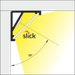 Profil do taśm LED posiada gniazdo „slick”, dzięki czemu możliwe będzie wkliknięcie dedykowanego wsuwanego klosza „E” (transparentny, szron, mleczny).