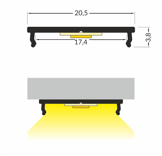 • może pełnić również funkcję montażową dla profili z gniazdem T (np. profil LED LINEA20 EE7F/TY)