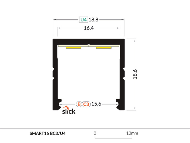 Profil LED SMART16 powstał jako odpowiedź na oczekiwania klientów, którzy szukali produktu o gabarytach pomiędzy mniejszym profilem LED SMART10, a większym profilem LED LINEA20.