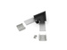 Komplet zawiera: 1 łącznik kątowy, 2 uchwyty sprężyste, 2 wkręty