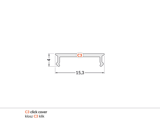 Montaż i demontaż klosza C3 klik jest wygodniejszy niż klosza wsuwanego. Polecamy jego wybór zwłaszcza w sytuacji kiedy w pierwszej kolejności będzie wymagany montaż profilu wraz z taśmą LED, a następnie wciśnięcie klosza. Klosz czarny C3 klik wykonany jest z materiału PMMA.