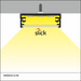 Profil LED WIDE24 posiada gniazdo Slick, które umożliwia wkliknięcie klosza „G” na wypadek, gdyby profil został zamontowany w miejscu, gdzie wsunięcie przesłony nie jest możliwe.