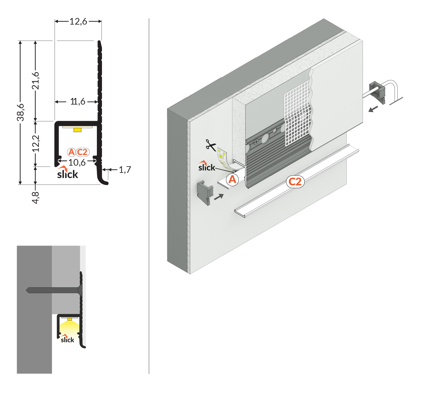 OMNI10 jest profilem aluminiowym idealnym do podświetlenia zabudowy wykonanej na bazie płyt kartonowo-gipsowych. Ten model profilu powstał z myślą o dekoracyjnym oświetleniu wychodzącym zza konstrukcji ściany z płyty G-K o minimalnej grubości 12,5 mm. OMNI10 prowadzony jest zwykle po obwodzie zabudowy, a możliwość szpachlowania jego krawędzi sprawia, że profil ten jest niewidoczny i z odpowiednio dobranym źródłem światła LED staje się dyskretnym kreatorem nastroju naszego salonu, korytarza, łazienki.