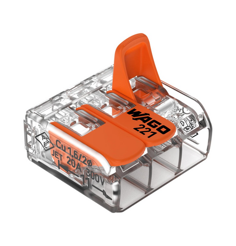 Złączka WAGO 221-413 (3x0,2–4 mm²) to uniwersalna złączka instalacyjna, umożliwiająca szybkie i bezpieczne łączenie trzech przewodów jedno- i wielodrutowych.