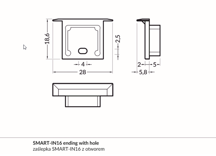 zaślepki SMART-IN16 z otworem w kolorze srebrnym wykonane z tworzywa ABS zapewniają estetyczny wygląd profilu.