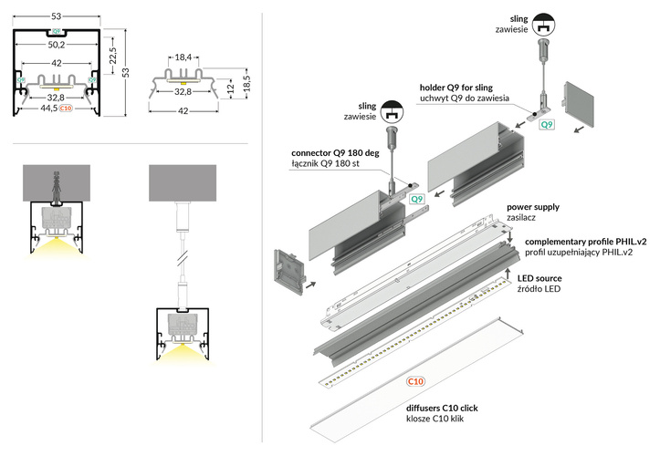 profil LED PHIL.v2 C10/Q9 1000 anod.