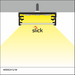 Profil LED WIDE24 posiada gniazdo Slick, które umożliwia wkliknięcie klosza „G” na wypadek, gdyby profil został zamontowany w miejscu, gdzie wsunięcie przesłony nie jest możliwe.