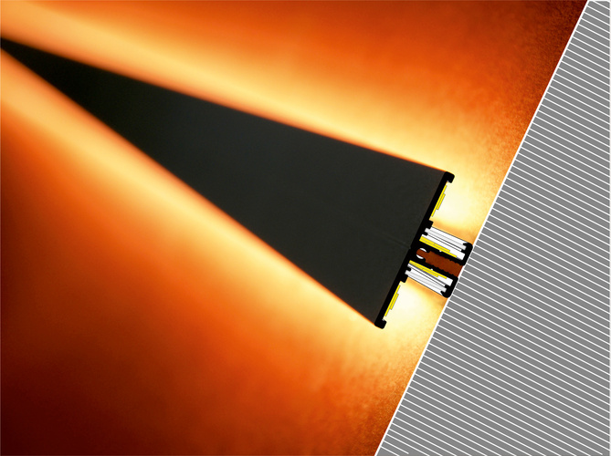 Profil do montażu taśm LED, wykonany z aluminium. Konstrukcja w kształcie litery T pozwala na skierowanie strumienia świetlnego w dwóch kierunkach (góra/dół, lewo/prawo). Mocowany za pomocą dedykowanych uchwytów (do ściany) lub bezpośrednio przy pomocy wkrętów (do mebla).